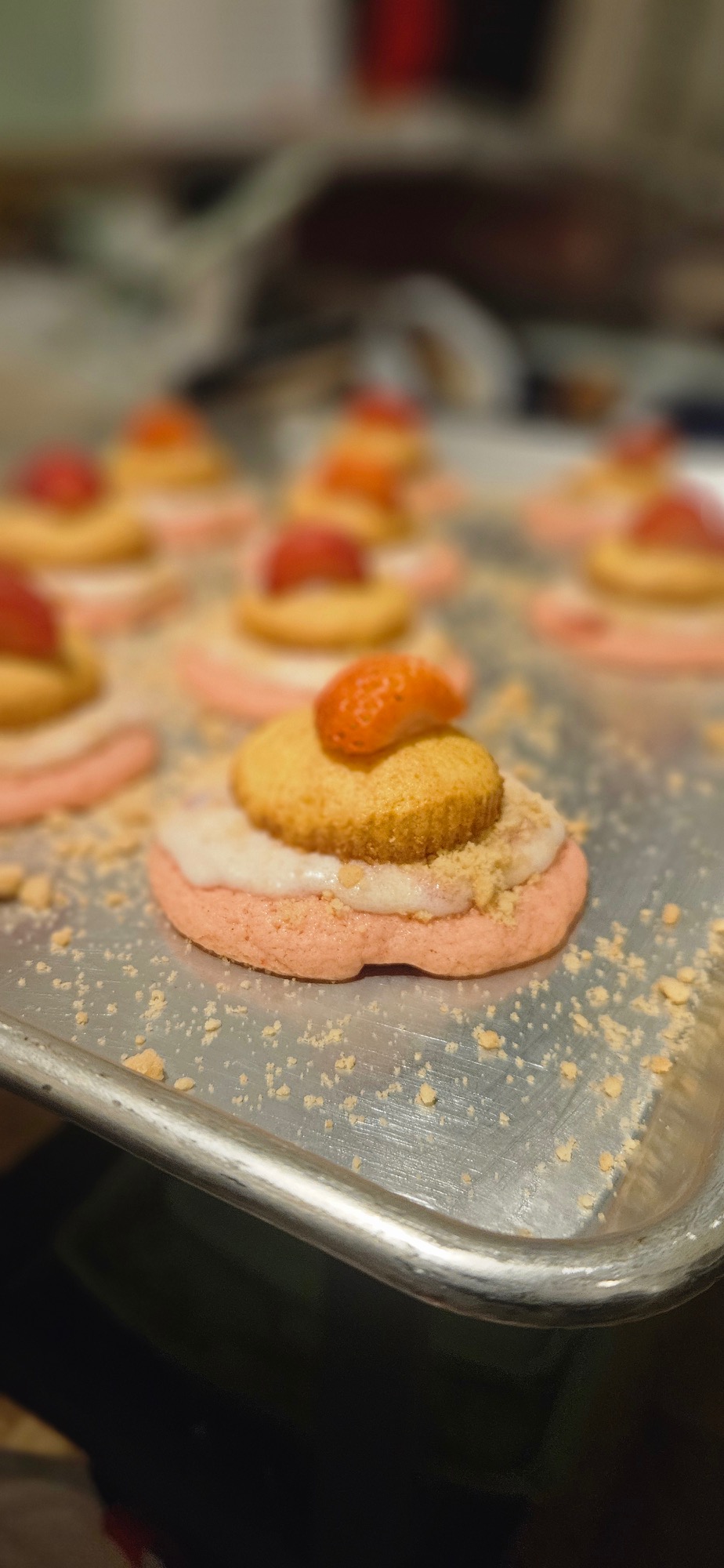 Rich and buttery with a hint of vanilla, offering a delightful combination of soft, chewy texture and crisp edges. Filled with cream cheese
